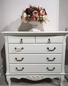 Романтический характер дизайна подчёркнут мягким сиденьем с утяжками. Пуфик выполнен из массива бука и МДФ, а обивка – из микровелюра или микрофибры. Покупатель может выбрать подходящую ткань, просмотрев варианты на отдельной фотографии.