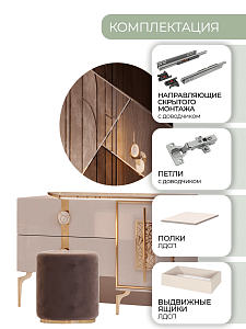 Декор металлизированные вставки. Обивка велюр серый. Каркас ЛДСП толщиной 22 мм.