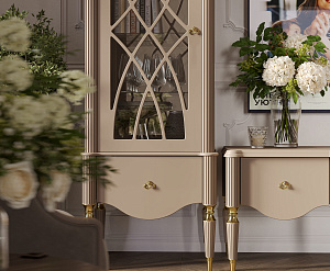 Изголовье, боковые царги и изножье с утончённым переплетающимся декором не просто украшают кровать, но и привносят индивидуальность в интерьер. Рекомендуемая высота матраса, мм⩽260. Углубление под матрас, 75 мм. Декор МДФ - древесноволокнистая плита среднего уровня плотности. Обивка велюр бежевый. Каркас ЛДСП толщиной 22 мм.
