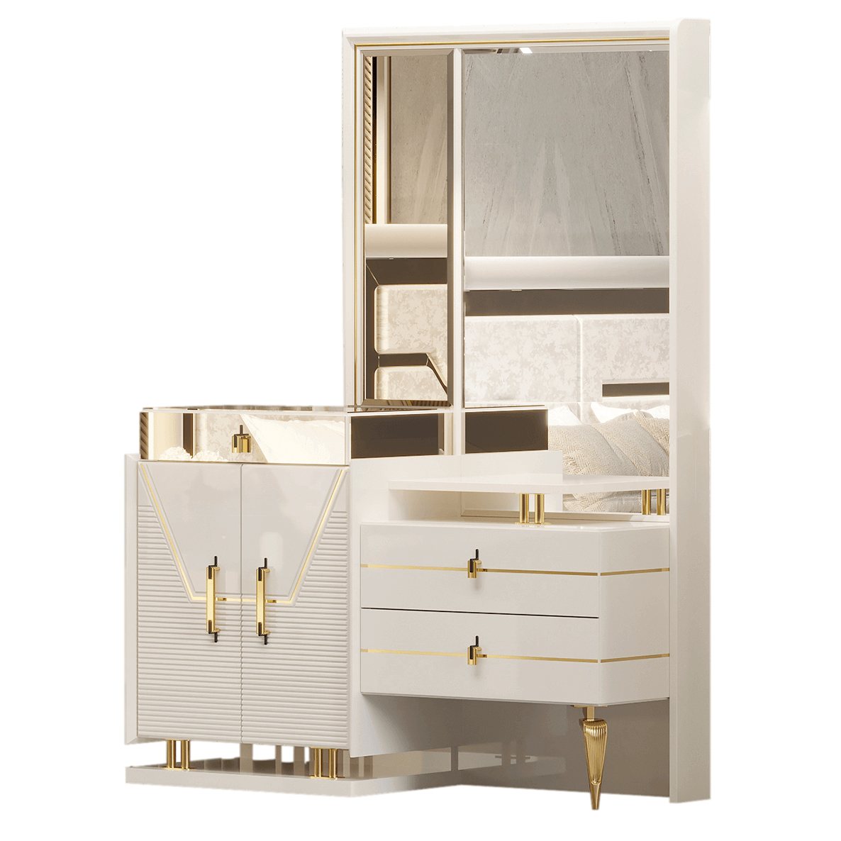 Туалетный стол с зеркалом Арида Стефани, цвет кремовый, 142х79х190 см.