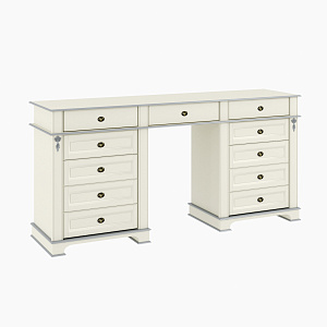 Тумба под телевизор из коллекции Atrium в цвете слоновая кость с серебром функциональна за счет комбинирования распашных дверей и выдвижных ящиков с шариковыми направляющими полного выдвижения. Тумба произведена из сочетания МДФ и массива, отделана шпоном бука. Серия выполняется в цвете: слоновая кость, слоновая кость с золотом, слоновая кость с серебром, орех, дуб