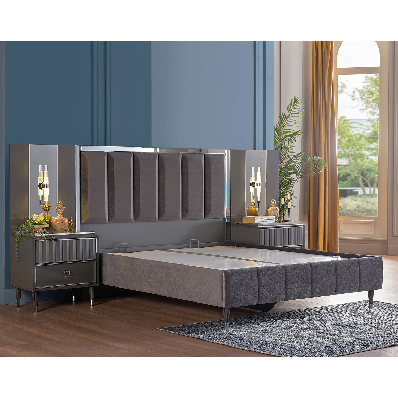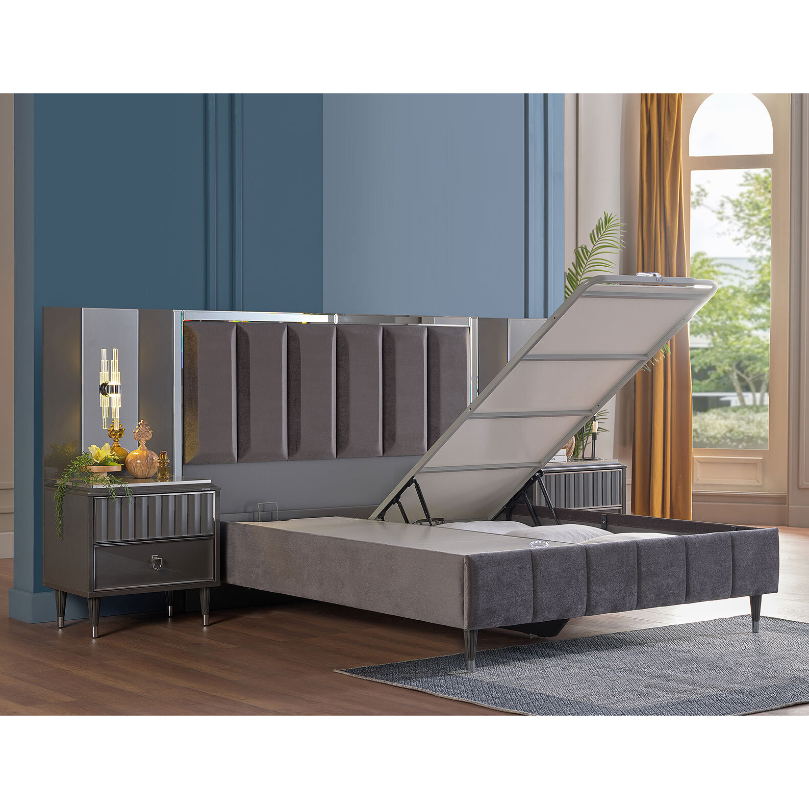 Шестидверный платяной шкаф Гравита (Gravita) от Bellona изготовлен из высококачественного ЛДСП производства Турция, класс эмиссии формальдегидов Е1. Две зеркальные двери расширят пространство и позволят рассмотреть себя в полный рост. Отличительной особенностью серии Gravita является вертикальная линия, повторяющаяся во всех предметах этой линии и внешние шарнирные ножки, разработанные специально для этой серии. В цветовой палитре предпочтение отдали глянцевым серым и кремовым панелям.