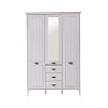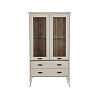 Отличительной особенностью серии Palermo является сочетание корпуса цвета светлого ореха и фасадов молочного цвета, повторяющаяся во всех предметах этой линии и металлические ножки. Витрина Палермо имеет одну стеклянную дверь, скрывающую стеклянные полки, и одну глухую дверь с деревянными полками за ней.
