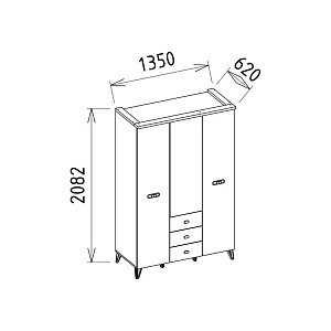 3-х дверный, 135x61x213, цвет: антрацит|золото (CARL-21)