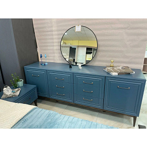 Коллекция «Гориция» в цвете «Сапфировый» — это заявка на современный интерьер. Глубокий синий лак на фасадах из МДФ придаёт мебели благородный блеск и визуальную лёгкость, а корпус из ЛДСП «Таксус» добавляет тёплых древесных нот. Модульная конструкция позволяет собрать гарнитур под любой вкус: от минималистичной спальни до просторной комнаты с полной комплектацией. Каждый элемент — шкаф, комод, тумба — проектируется с учётом эргономики и долговечности. Bravoмебель, проверенный производитель с многолетним опытом, предлагает стильную мебель по цене эконом-класса, не жертвуя качеством.