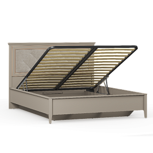 Высокая спинка украшена декоративной планкой из МДФ с патиной, что подчеркивает современный дизайн.