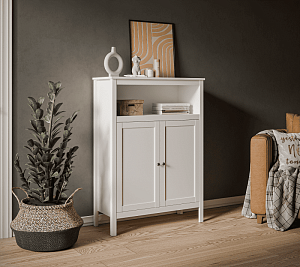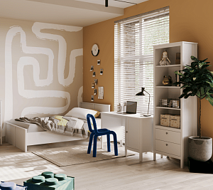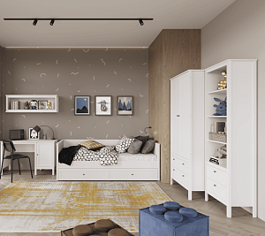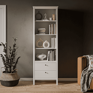 Несмотря на компактный размер шкаф отличается своей вместительностью: пять полок и выдвижной ящик создают удобное пространство для хранения одежды, белья и постельных принадлежностей. Дверца навешивается как на левую, так и на правую сторону, что позволяет разместить шкаф в любом уголке комнаты.