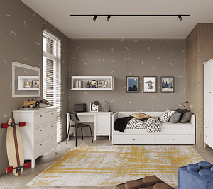 Шкаф станет отличным решением для детских: благодаря простой конструкции и небольшой высоты у ребёнка будет обеспечен лёгкий доступ к вещам.