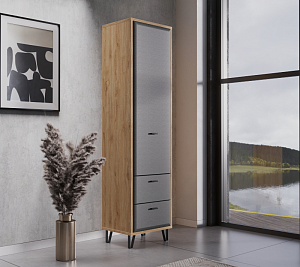 Купить Шкаф двухдверный БРВ Грейс (Grace), цвет дуб наварра/графит, 79х42х200 см (REG2D2S) по выгодным ценам