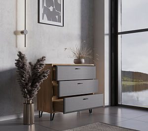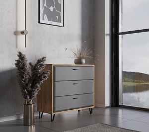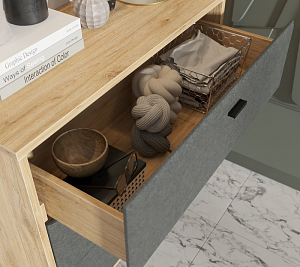 Корпус тумбы Grace изготовлен из ламинированной плиты ДСП, а в отделке фасада применяется МДФ.
