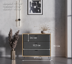 Тумба-витрина с подсветкой БРВ Грейс (Grace), цвет дуб наварра/графит 144х42х90 см (KOM2W3S)