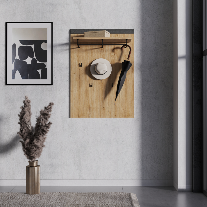 Купить Вешалка БРВ Грейс (Grace), дуб наварра/графит, 79х27х110 (WIE) по выгодным ценам