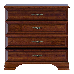 Панели ящиков имеют рамочно-филенчатую конструкцию, что гарантирует прочность и стабильность. Металлические ручки с декоративной накладкой дополняют классический стиль и удобны в использовании. Благодаря каштановому цвету тумба гармонично впишется в классический и винтажный интерьер.