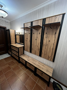 Тумба Loft представлена в виде компактного, но вместительного шкафчика высотой 120 см и шириной 92 см. Она содержит распашную и откидную дверь, а также 3 открытые полки и выдвижной ящик. Высокие ножки делают конструкцию визуально легкой и упрощают уборку. Чтобы избежать опрокидывания шкафа и надежно зафиксировать его к стене, производитель добавил к комплекту специальную ленту.