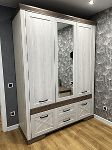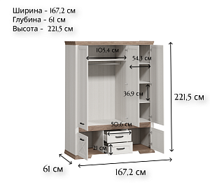 - Шкаф разделен на 3 отделения: правое и левое – полка и стационарная штанга для одежды;