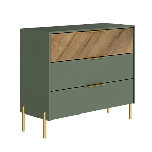 Изящное сочетание оттенков натурального дерева и благородного зелёного цвета добавит в интерьер индивидуальности и привлечёт к себе внимание. Позолоченные металлические ручки и ножки придают мебели лёгкости и воздушности.