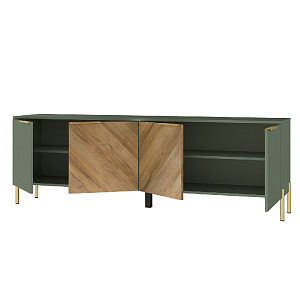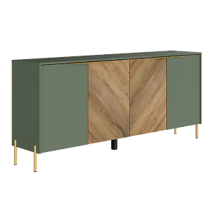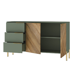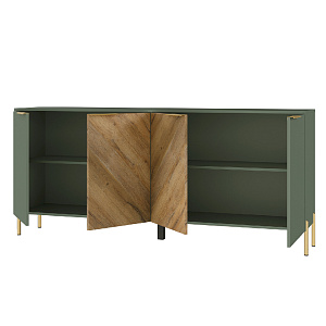 Прикроватная тумба с двумя отделениями станет стильным и практичным дополнением вашей спальни. Её минималистичный дизайн и изысканное сочетание дымчатого зелёного оттенка с текстурой дуба вотан создают атмосферу уюта и элегантности.