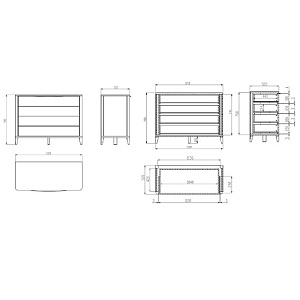 Комоды, прикроватные тумбочки и высокие комоды базируются на 4 металлических ножках.