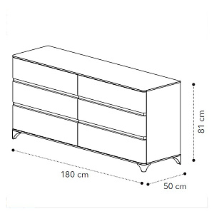 Комод Camelgroup Maia sabbia, 6 ящиков, FLAT|MAIA, цвет: янтарная береза, 180x50x76 см (154CMD.03AV)