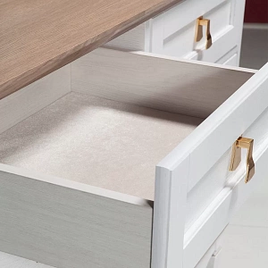 Мебель из коллекции "Тельма" выполнена из качественных материалов, что обеспечивает прочность и долговечность изделий. В цветовой гамме белого и натурального дуба мебель приобретает свежий и легкий вид, который может прекрасно дополнить различные интерьеры.