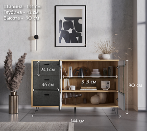 цвет дуб наварра/графит, 79х42х200 см (REG2W)