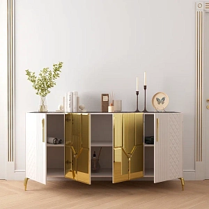 Это позволяет создавать комоды различных форм и размеров. Внешний вид комода может быть украшен различными элементами, такими как, зеркальные вставки, глянцевые поверхности и прочим. Также они могут также иметь изгибы и криволинейные формы, что придает им динамичный и современный вид.
