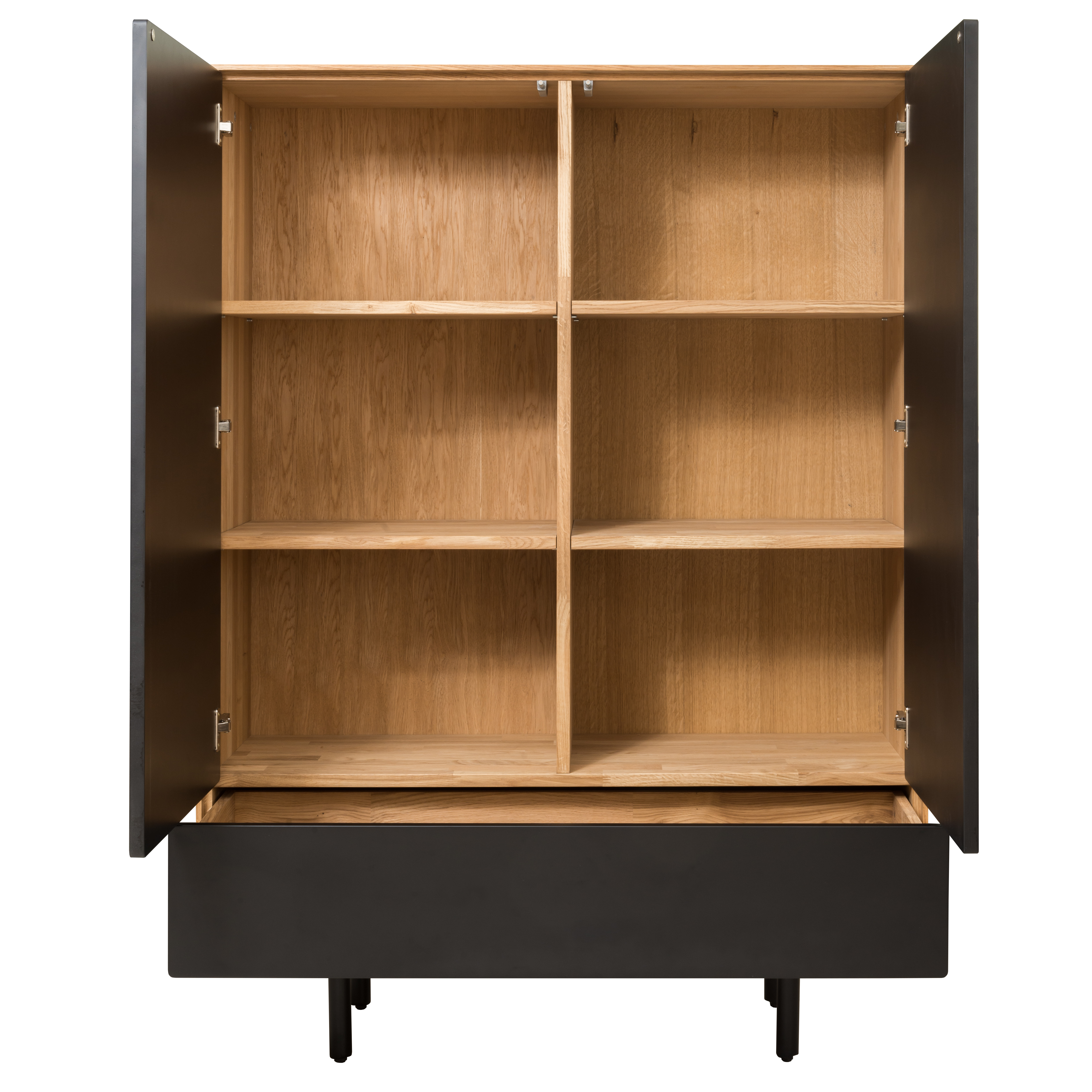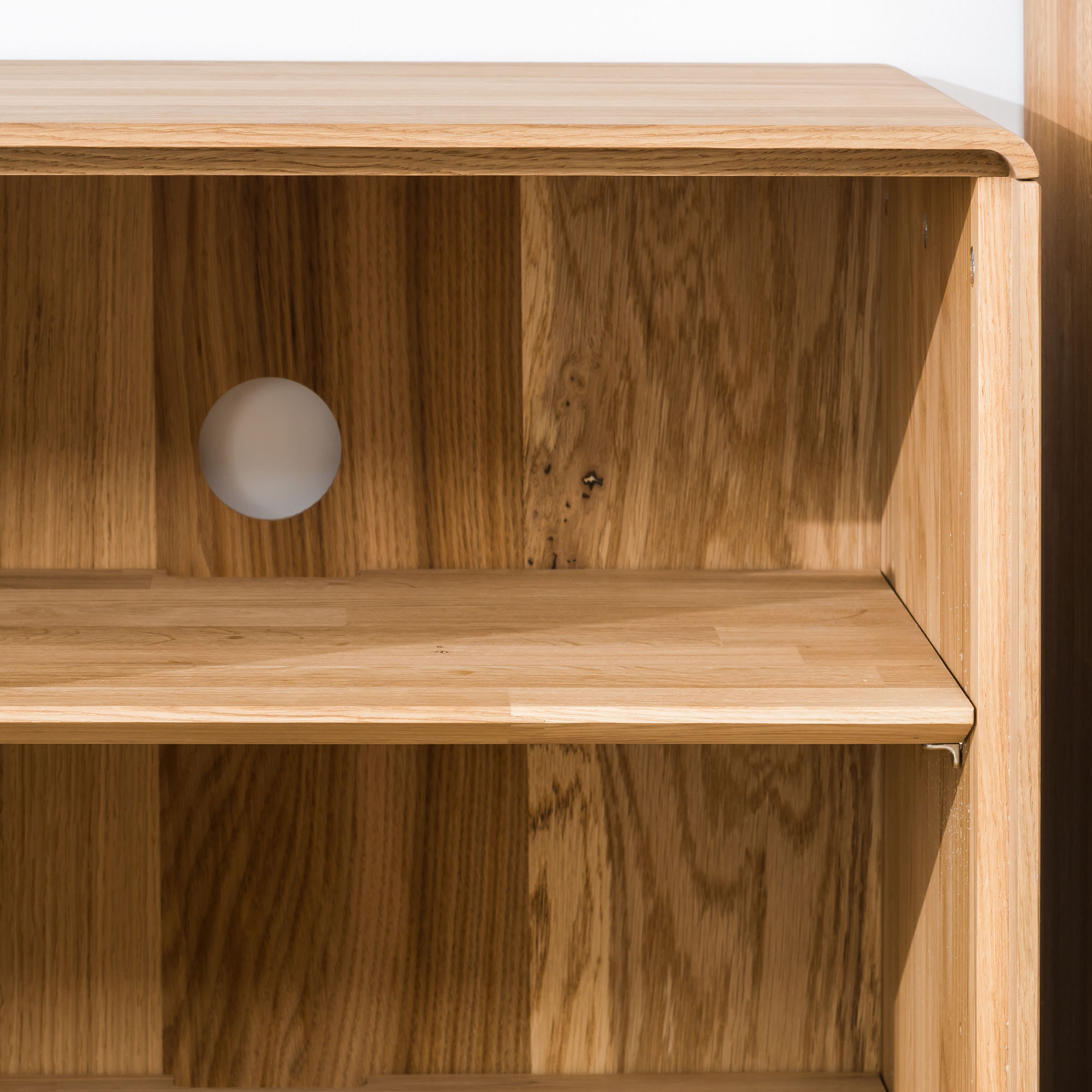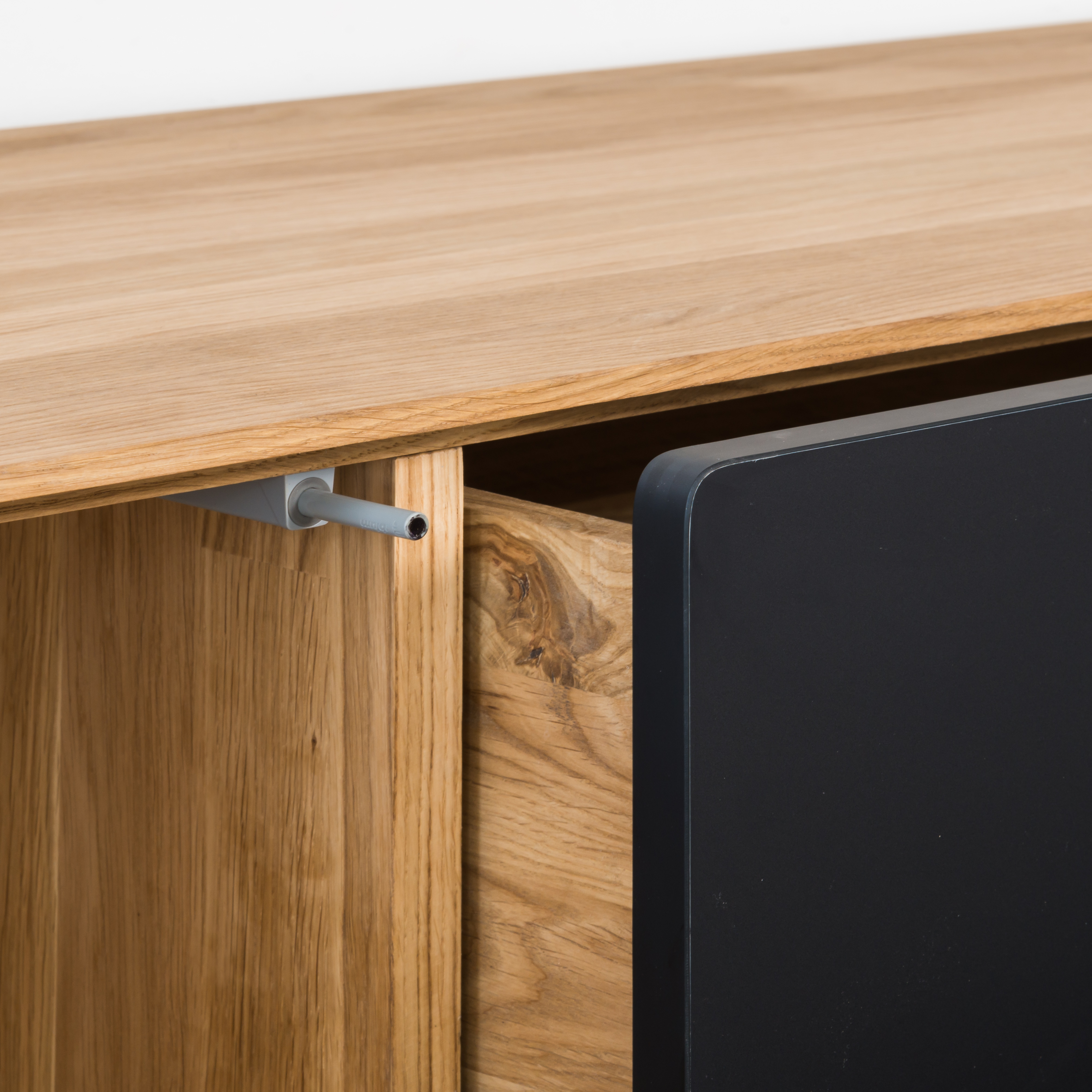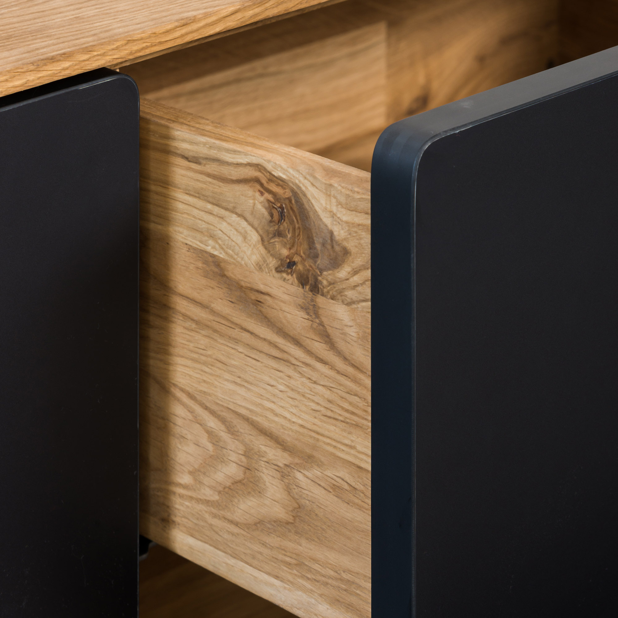 Каркас выполнен из массива дуба, фасад- массив дуба. Задняя стенка, дно ящиков-фанера, облицованная шпоном дуба. В ящиках -направляющие скрытого монтажа с доводчиком, петли с доводчиком.