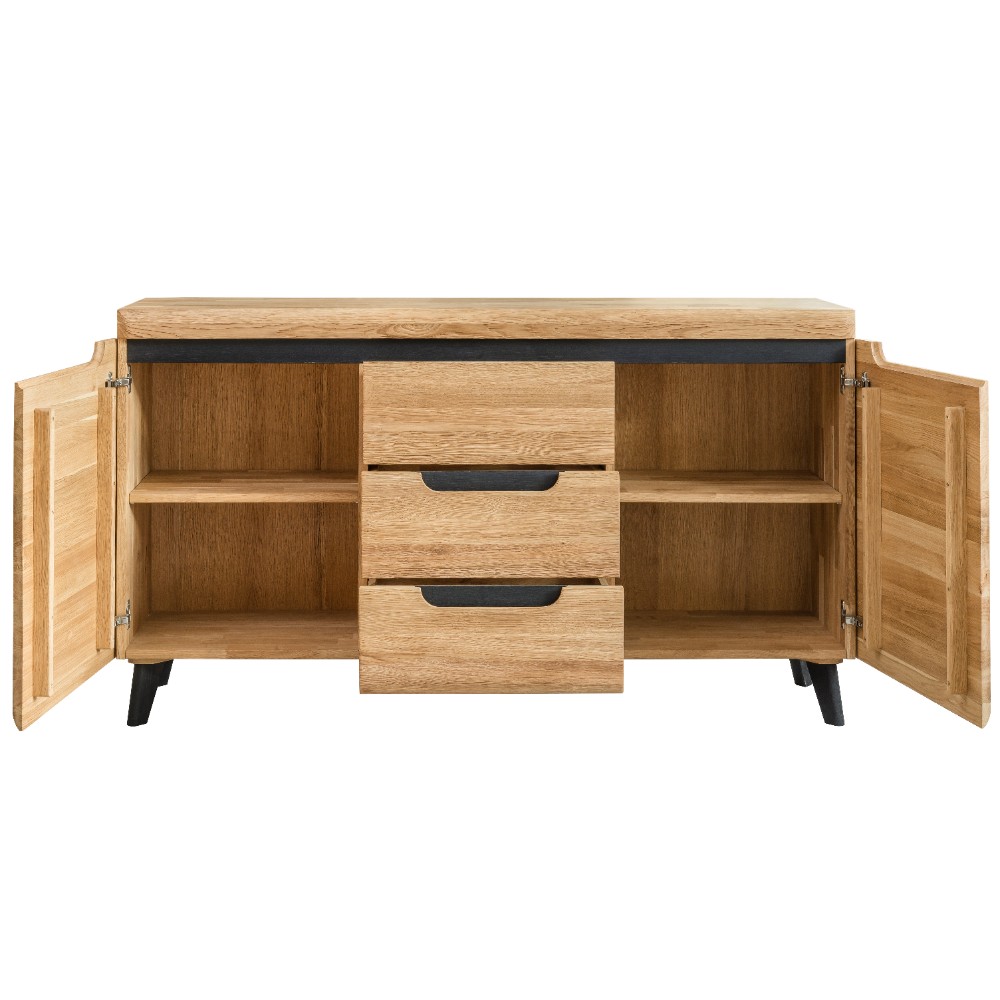 Каркас выполнен из массива дуба, фасад- массив дуба. Задняя стенка, дно ящиков-фанера, облицованная шпоном дуба. В ящиках -направляющие скрытого монтажа с доводчиком, петли с доводчиком.