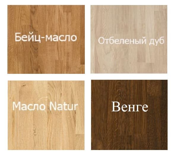 Стол может быть выполнен в цветах: отбеленный дуб, дуб натуральный (паркетный), дуб бейц-масло, дуб венге.