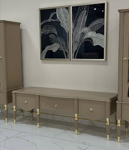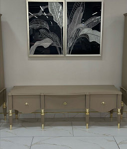 Прямоугольная конструкция мебели воплотила изящество и шик в каждой линии. Оборудована ящиками. Такая тумба на ножках доступна по предварительному заказу, непосредственно со склада производителя. |