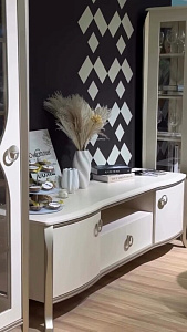 Тумба на ножках станет отличным выбором для современной гостиной. Ее лаконичный дизайн гармонично впишется в любой интерьер, а вместительные полки позволят разместить все необходимое. Благодаря тонким ножкам мебель выглядит невесомой, создавая ощущение простора.