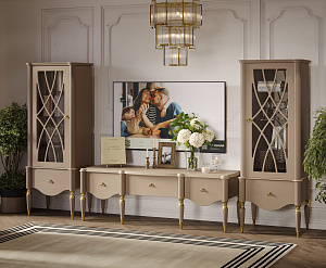 Элитные TV-тумбы выполнены в классическом дизайне и подойдут в просторную гостиную такого же стиля. Мебель на ножках, имеет выдвижные ящики и дверцы. В наличии тумба цвета орех, черешня, белый и с «позолотой». |