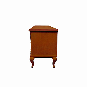 Удобная модель с закрытыми отсеками и полками для DVD-проигрывателя, игровой или ТВ-приставки. Эта телевизионная тумбочка отлично подойдет как для просторной гостиной, так и для небольшого зала. Облицована шпоном черешни и ореха. |