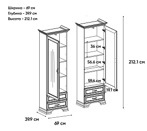 Витрина 1 дверная Гомельдрев Престиж (левая)