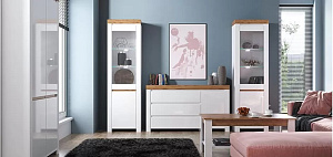 Прямые витрины – отличное решение для гостиной, где хочется создать атмосферу уюта и элегантности. Они позволяют эффектно демонстрировать любимые предметы декора, коллекционные изделия или книги, при этом сохраняя пространство открытым и воздушным. Витрины могут быть выполнены в различных стилях, от классического до современного, и гармонично вписываются в любой интерьер.