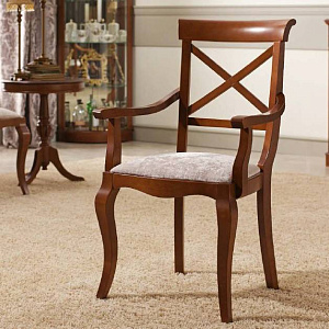 Отличное дополнение к мебельному гарнитуру для гостиной из Испании. Кресло создаются из натурального массива дерева, МДФ и облицовываются древесным шпоном. Наши клиенты могут выбрать из каталога и выгодно купить подобную классическую мягкую мебель в расцветках: «орех», «черешня», «белый». |
