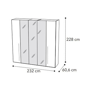 5-х дверный, c зеркалом, цвет: грецкий орех, 232x60x2...