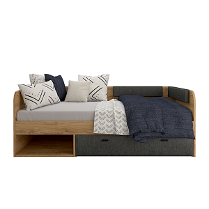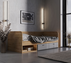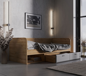 90х200, с ящиками, цвет белый /дуб вотан, 207х94хх71 ...