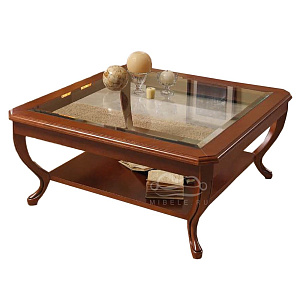 квадратный со стеклянной столешницей, цвет черешня, 60...