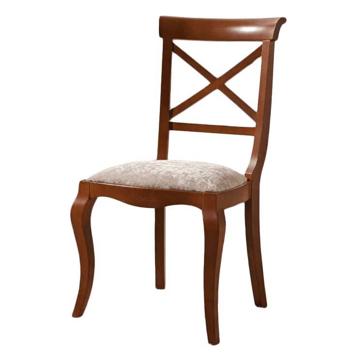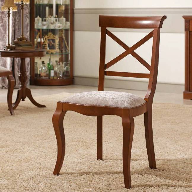 Столешница имеет стеклянную вставку посередине и закреплена на четырех чуть изогнутых ножках, украшенных простой резьбой.