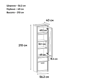 стеллаж, цвет Дуб мадура/энигма, 56х37х210 см (1D1S/D2)