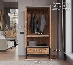 цвет дуб вотан, 62х39х193 см (SZF1W1S/60)