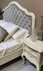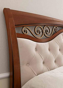 В каталоге полуторная кровать класса «Люкс» в дворцовом стиле. Дополнена необычным резным орнаментом, удобной мягкой спинкой. Оригинальная отделка из ценного массива придает изделию особый шик. |