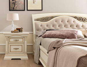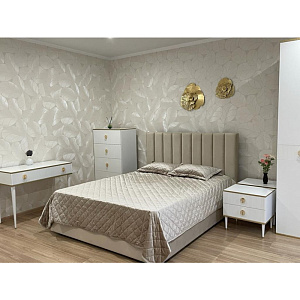 двуспальная, без изножья, цвет: белый с золотом, 160x...