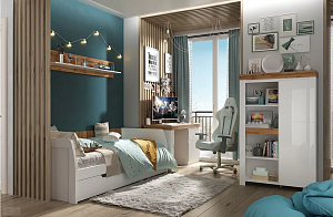 Кровать односпальная Anrex Taurus90х200, с ящиками, цвет белый /дуб вотан, 207х94хх71 ... Код товара: 134567 Цена:₽