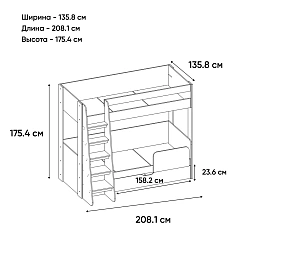 Кровать двухъярусная Anrex Diesel90х200 см, цвет Дуб мадура/веллингтон, 135х208х175 см Код товара: 134472 Цена:₽