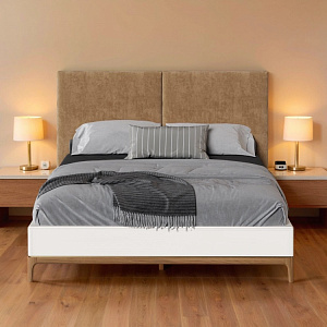 Изделие сконструировано в минималистическом стиле, имеет лаконичный и в тоже время элегантный дизайн. Современная кровать без подъемного механизма, на фигурных ножках доступна для покупки на заказ с официального сайта производителя. Цветовое оформление: белый, венге, орех. |