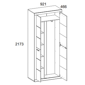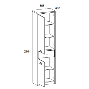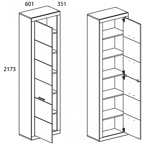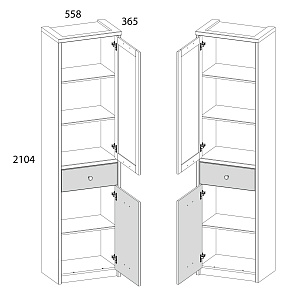 2-дверный с полками, цвет белый\дуб вотан, 106х58х203 ...