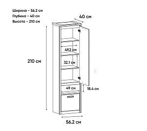 с ящиками, цвет Дуб мадура/энигма, 86х59х210 см (2DG2S...