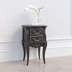 Небольшая, но вместительная модель. Эта красивая тумбочка черного цвета оснащена двумя выдвижными ящиками. Выполнена в стиле прованс. |